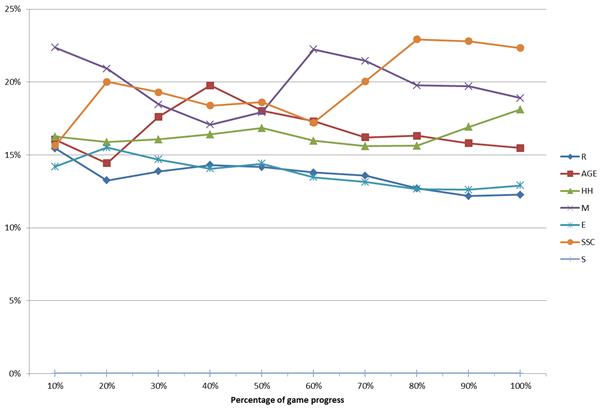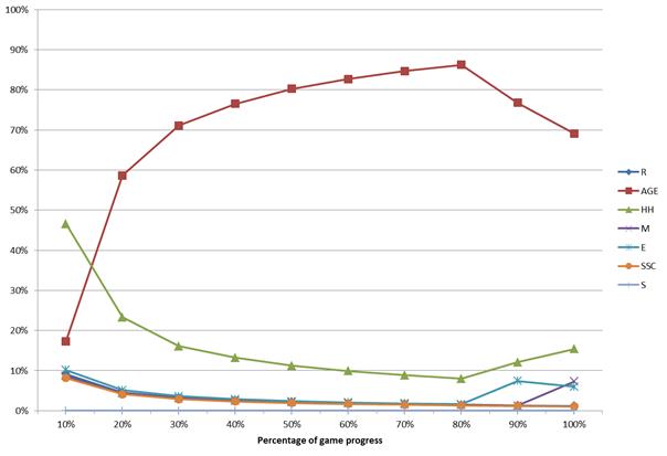 - Dynamic self-adaptation of the strategies based on their performance in a currently played game